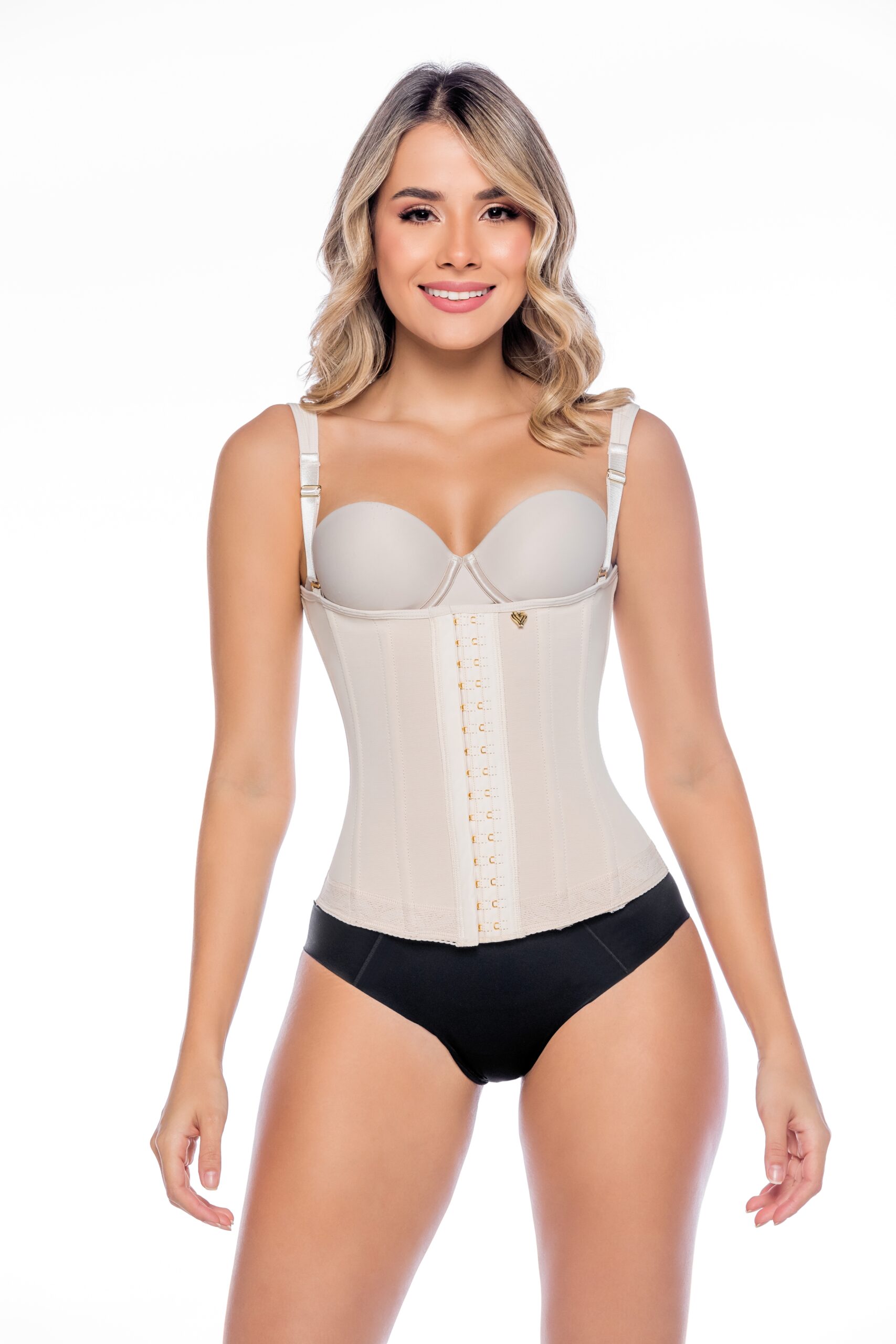 Diseñado para definir cintura, estilizar el abdomen y brindar soporte al busto. Cuenta con 9 varillas metálicas para mayor ajuste y control, forro interno en algodón que aporta suavidad y confort, y 3 niveles de broches que permiten un ajuste progresivo según necesidad.