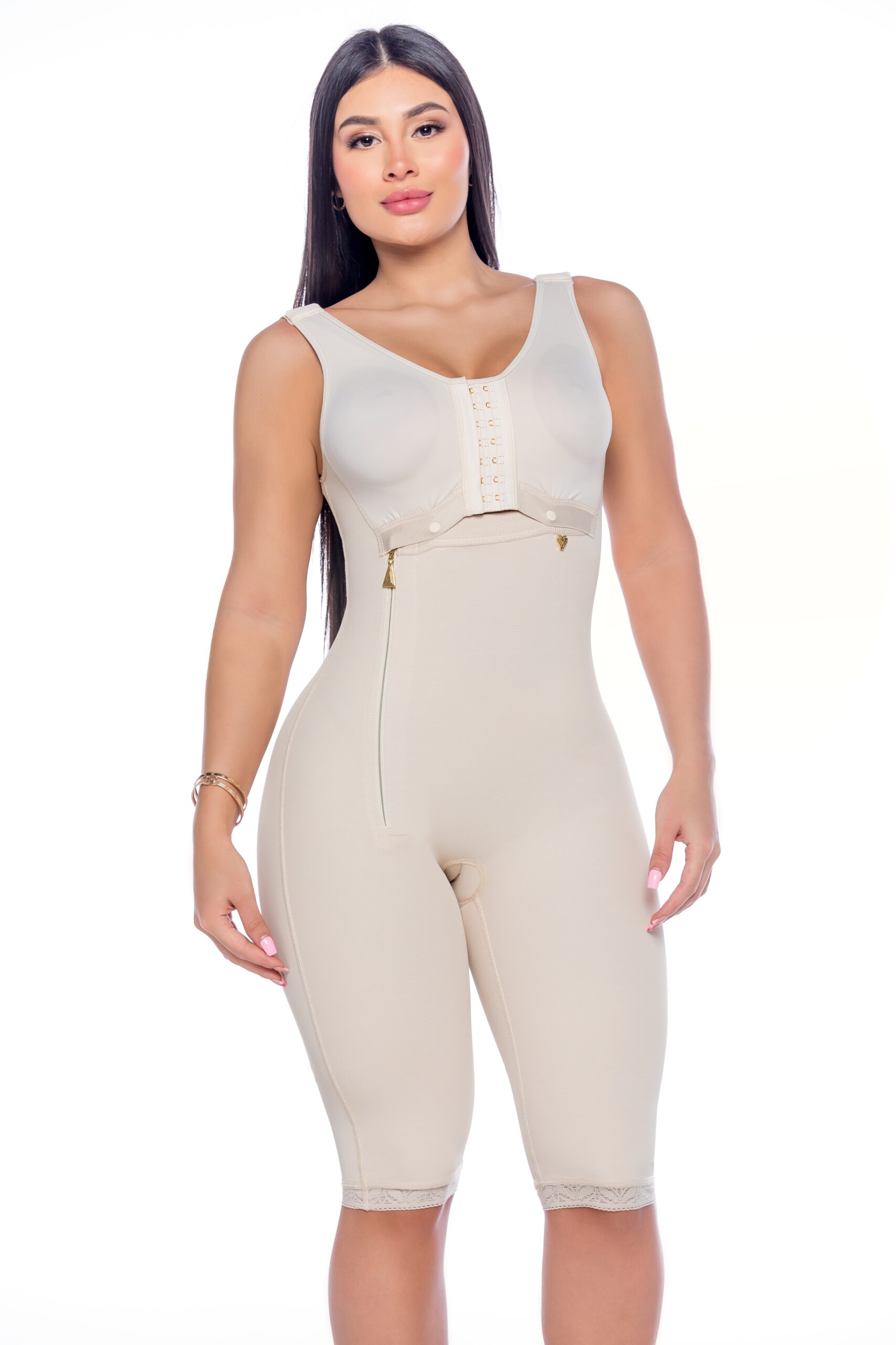 Diseñada con gafete en hombro de tres posiciones y forro interno en Lycra Fresh para mayor frescura y comodidad. Incorpora tres niveles de broches en el brasier, cierre lateral para mejor ajuste, efecto cola corazón y apertura perineal con protección.