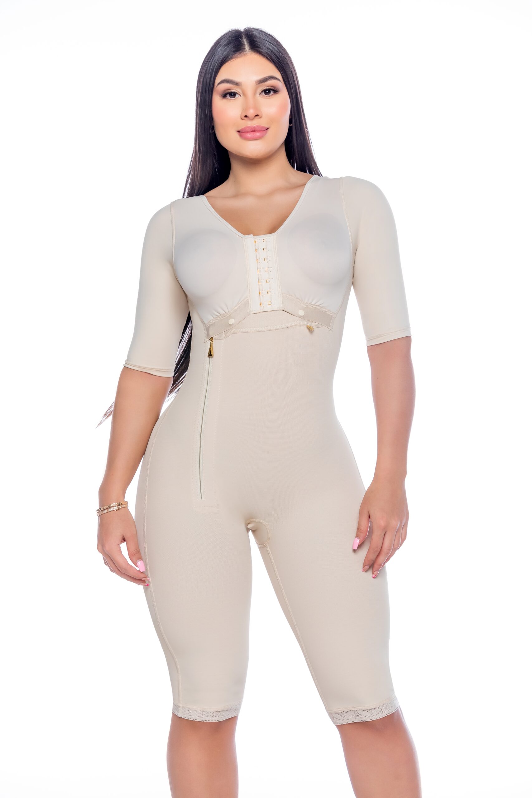 Faja moldeadora de pierna larga con brasier prehormado y mangas.
