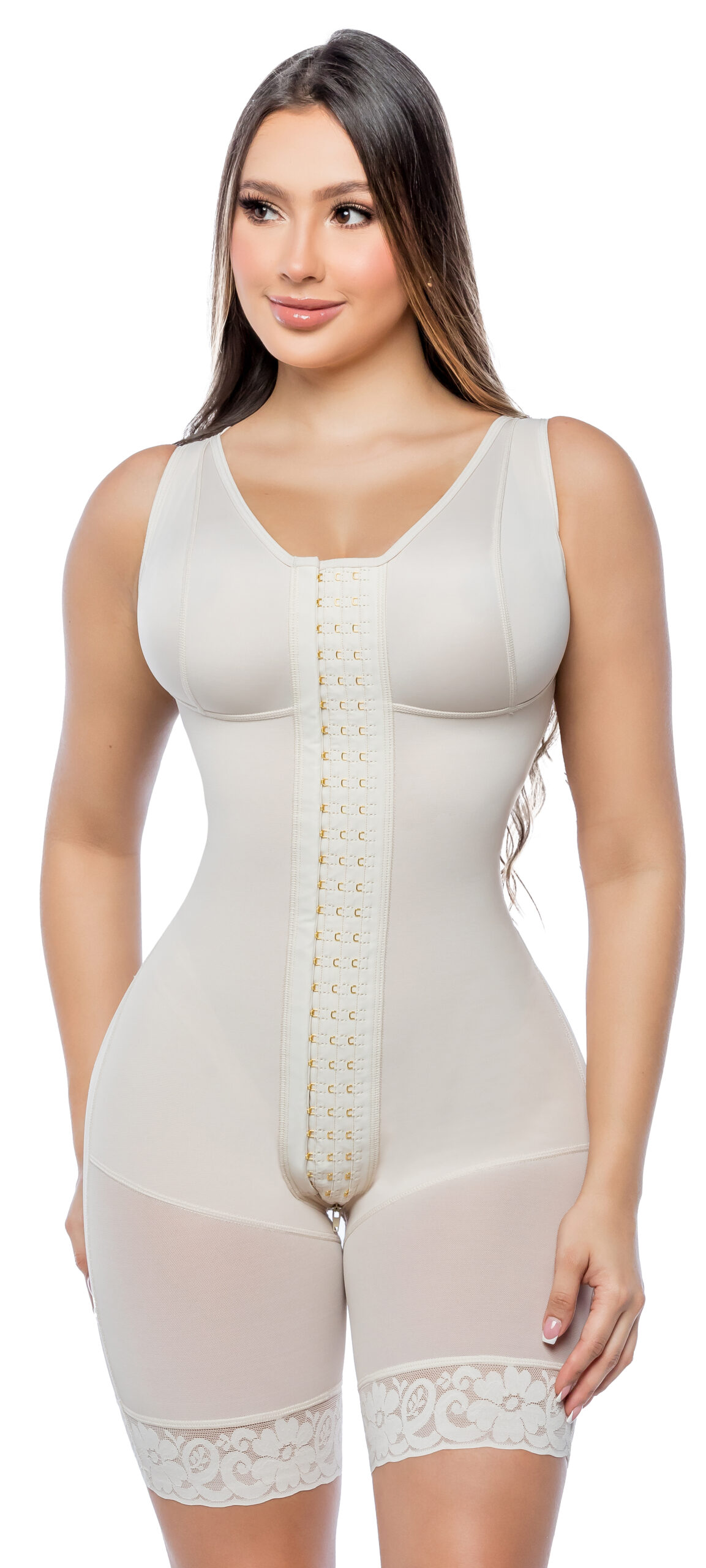 Diseñada para brindar control y realce natural de la figura. Ideal para uso diario, postoperatorio y post embarazo. Cuenta con gafete en hombro con 3 posiciones y forro interno en Lycra Fresh que proporciona frescura y confort. Incorpora doble refuerzo en abdomen, 3 niveles de broches continuos y efecto cola con pinzas para un mayor realce de glúteos. Incluye cierre perineal que facilita su uso diario.