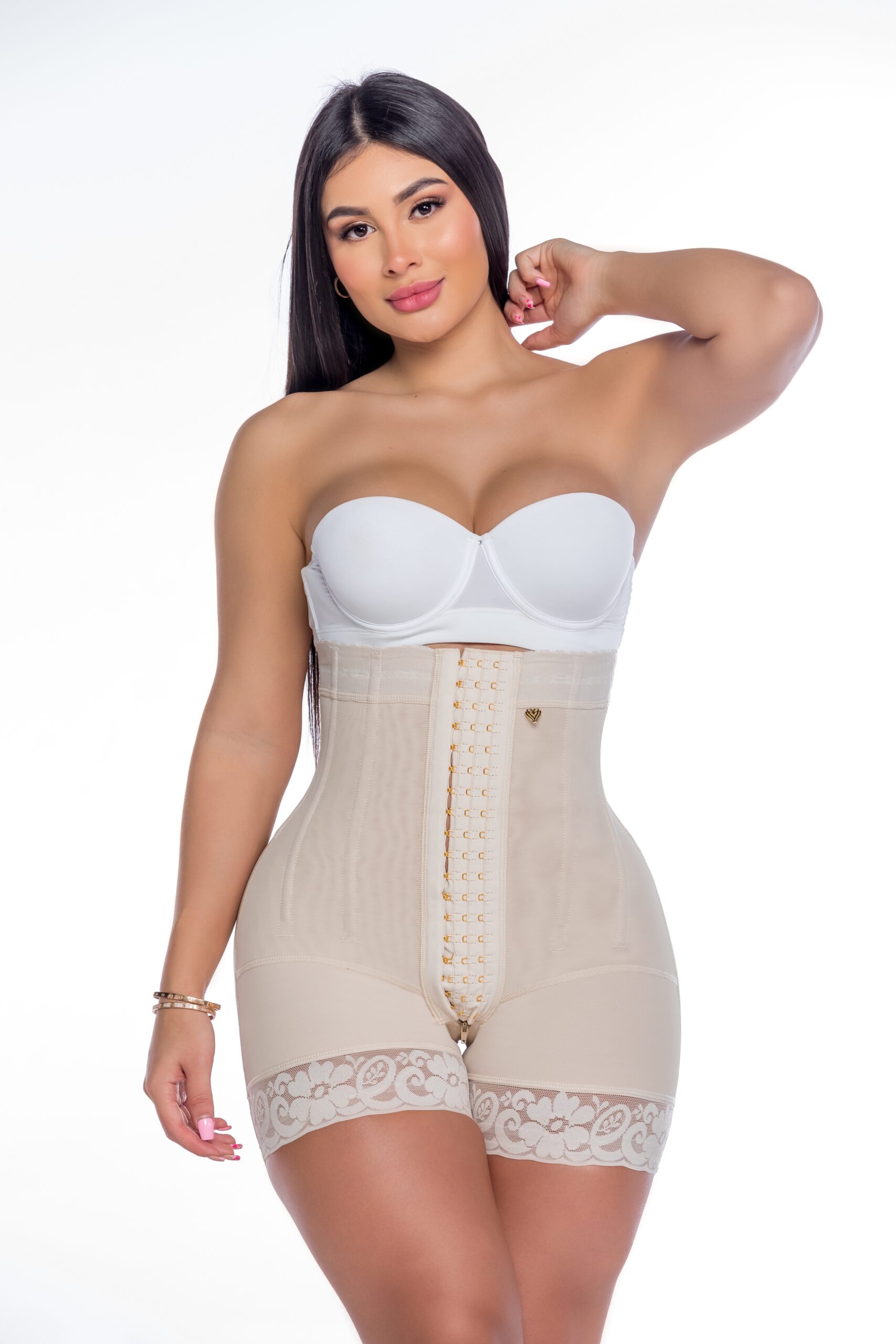 Diseñado para esculpir la figura con compresión firme y máxima definición de cintura. Cuenta con elástico siliconado en cintura que evita deslizamientos, forro interno en licra fresh para mayor confort y 3 niveles de broches para un ajuste personalizado. Incorpora 9 varillas metálicas que brindan mayor soporte, cierre perineal y encaje siliconado en pierna para un acabado seguro y elegante.