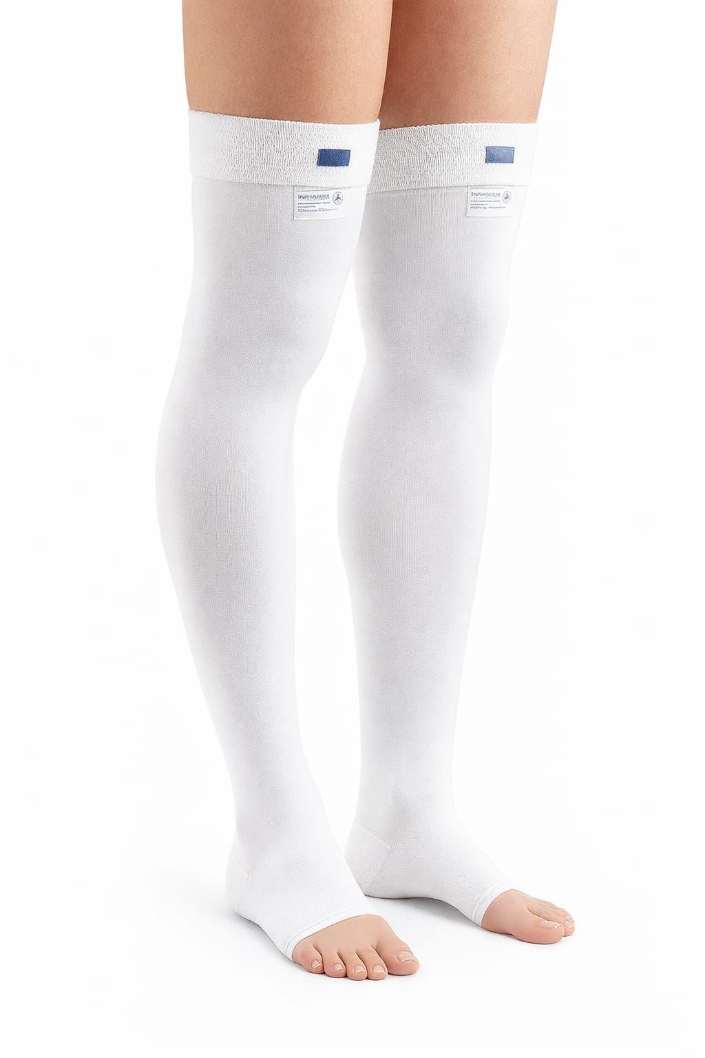Diseñadas para prevenir la formación de coágulos sanguíneos (trombosis) y favorecer una adecuada circulación venosa durante periodos de inmovilidad, cirugías o recuperación postoperatoria. Su compresión graduada ayuda a reducir la hinchazón, pesadez y fatiga en las piernas, brindando confort y seguridad al paciente.